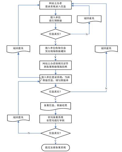 通知要求,對備案信息真實性當(dāng)面核驗工作正式啟動前接入的網(wǎng)站,各接入服務(wù)單位要在2010年2月底前制定備案信息真實性核驗工作詳細(xì)計劃,報許可證發(fā)證機關(guān)和單位注冊所在地通信管理局,并在2010年9月底前完成全部網(wǎng)站的備案信息真實性核驗。